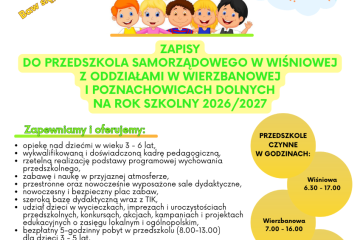 Na podstawie zarządzenia nr 14/2026 z dnia 30 stycznia 2026r. Wójta Gminy Wiśniowa w sprawie terminów przeprowadzania postępowania rekrutacyjnego i postępowania uzupełniającego, w tym terminów składania dokumentów do publicznych przedszkoli na rok szkolny 2026/2027 Dyrekcja