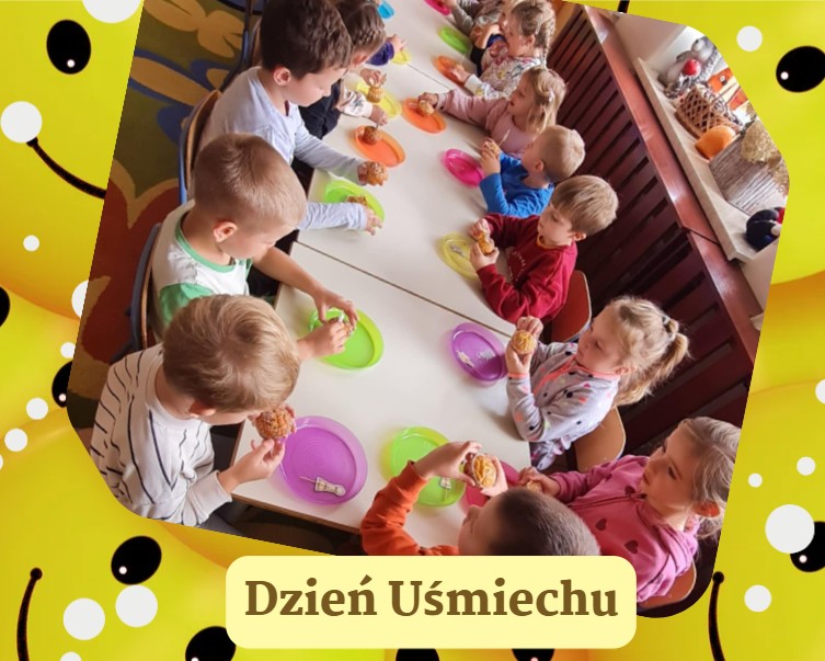 Dzień Uśmiechu to święto propagujące radość, życzliwość i optymizm. Ten dzień rozpoczęliśmy od wspólnych zabaw integracyjnych. Każde dziecko otrzymało „uśmiechniętą buzię”, którą mogło ozdobić według własnego pomysłu – powstały prawdziwe arcydzieła! Następnie przedszkolaki wzięły udział w grach i konkurencjach ruchowych pod hasłem „Podaj dalej uśmiech”. Nie zabrakło również tańców przy ulubionych piosenkach oraz wspólnego wykonania plakatu „Nasze uśmiechy”. Dzieci chętnie dzieliły się tym, co sprawia im radość i jak mogą rozweselić innych. Na zakończenie zajęć każdy przedszkolak otrzymał słodki upominek, czyli przepyszne babeczki, przygotowane przez Panią Edytkę, mamę Majusi. Ten wyjątkowy dzień przypomniał dzieciom jak ważne jest bycie życzliwym i radosnym – bo uśmiech nic nie kosztuje, a potrafi zdziałać cuda! 🙂