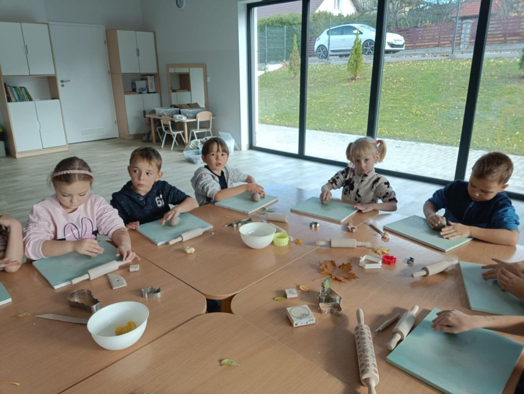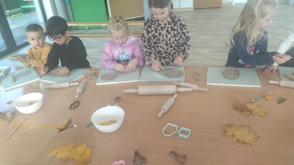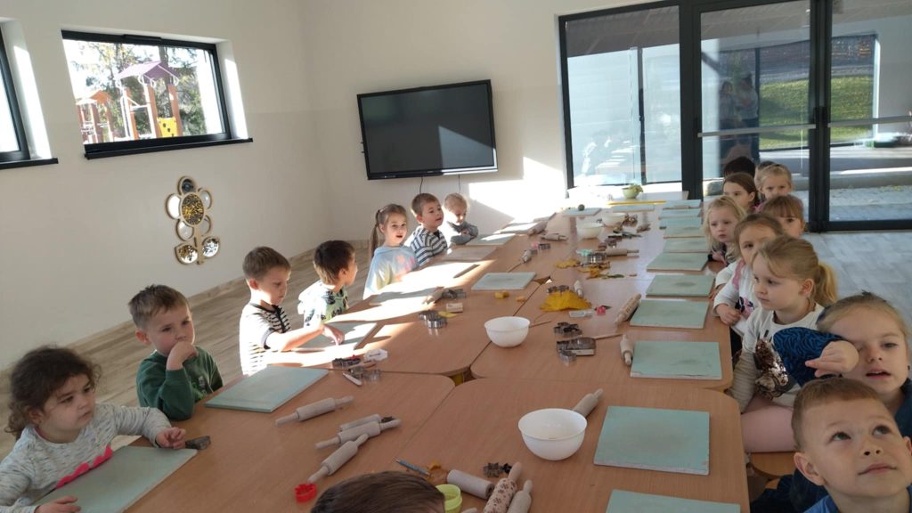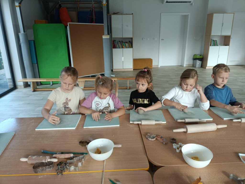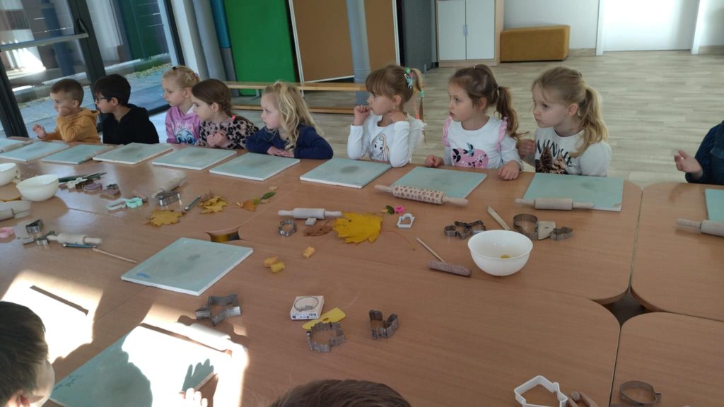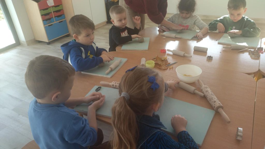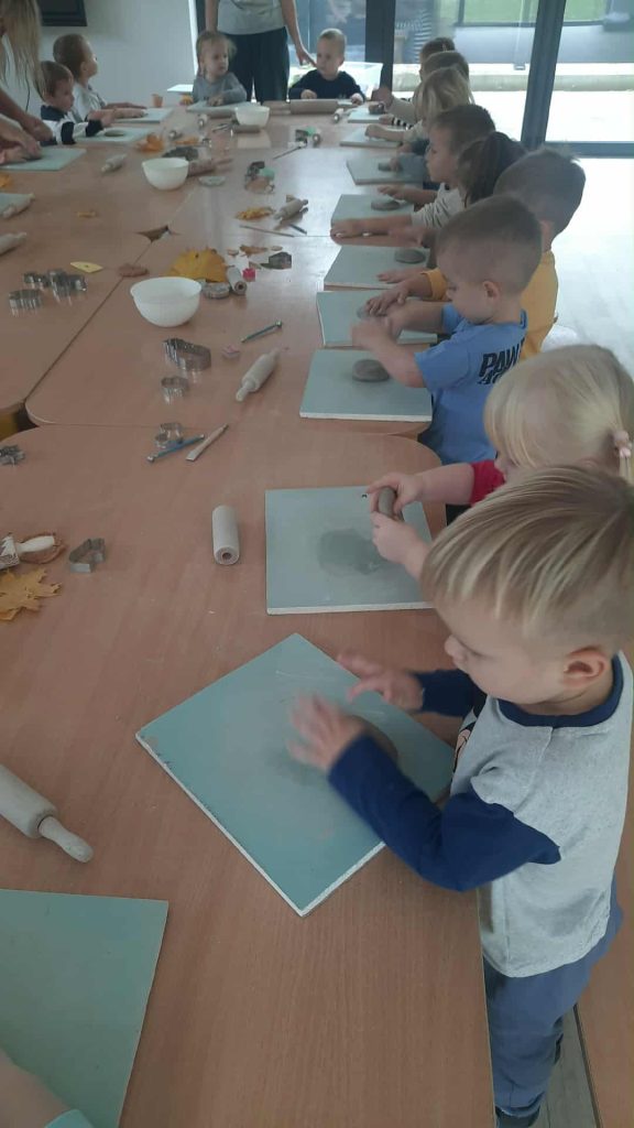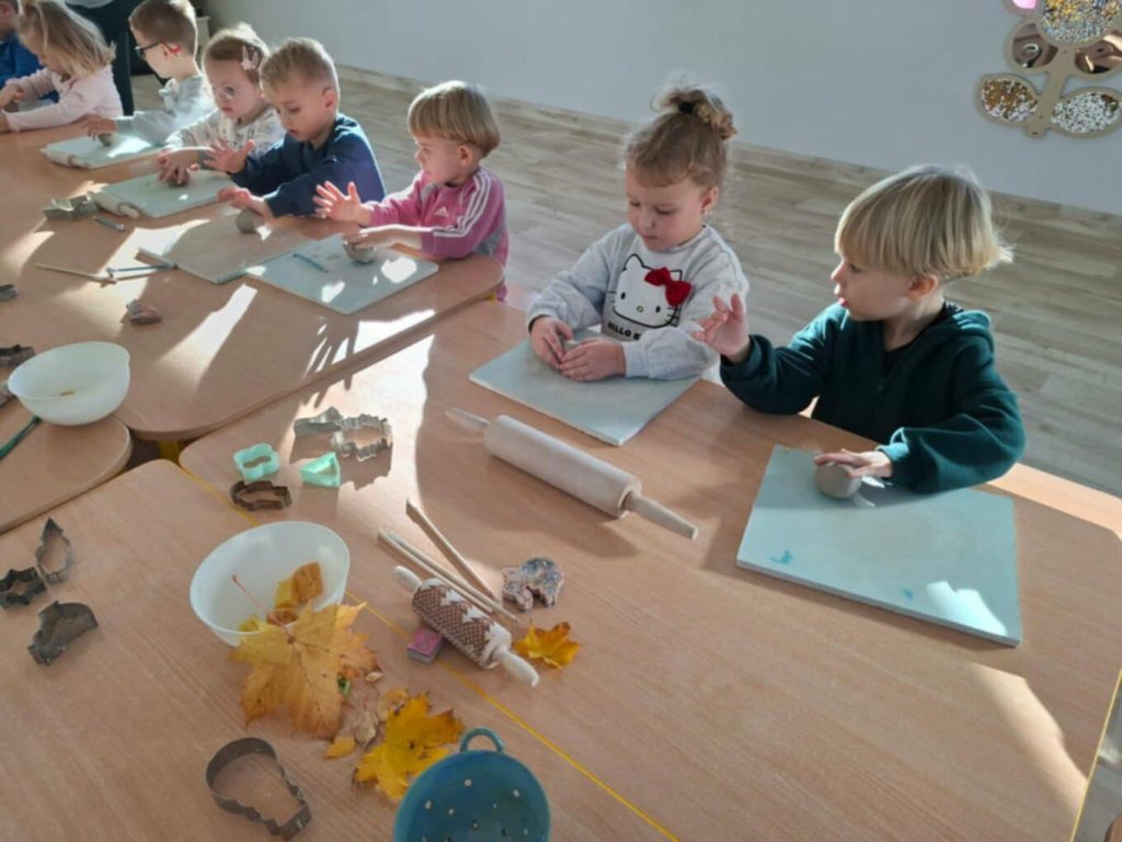 z firmy Eve-Art. Dzieci instruowane przez panią Ewę ugniatały i wałkowały glinę, a następnie formowały kształty i ozdabiały rozmaitymi wzorami. Zajęcia sprawiły dzieciom dużo radości. Były świetną okazją do skupienia uwagi, uruchomienia wyobraźni, a także zabawą rozwijającą sprawność dłoni.