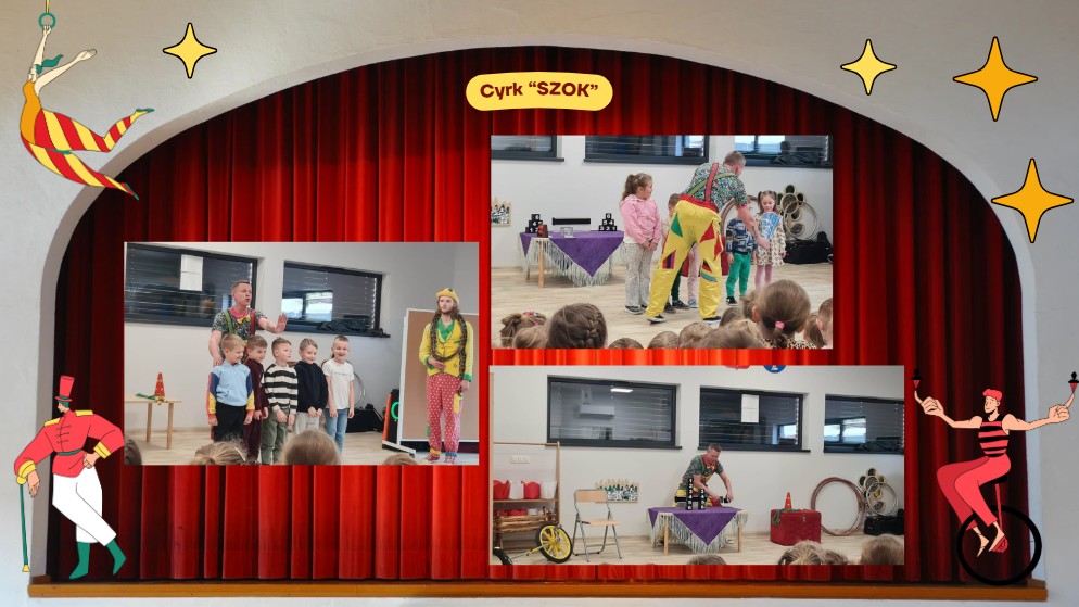 Dzisiejszy dzień upłynął naszym przedszkolakom pod znakiem śmiechu i niesamowitych emocji! Wspólnie z kolegami i koleżankami z Przedszkola Samorządowego w Wiśniowej i Wierzbanowej podziwialiśmy umiejętności sceniczne niezwykłych artystów cyrkowych, którzy przenieśli nas w świat pełen niespodzianek. Dzieci z zapartym tchem podziwiały: pokazy żonglerki, sztuczki iluzjonistyczne, gimnastykę artystyczną i akrobacje oraz występy klauna. Największą atrakcją była możliwość aktywnego udziału w przedstawieniu – niektórzy z naszych dzielnych przedszkolaków mogli spróbować swoich sił jako asystenci cyrkowców. Było to niezapomniane widowisko, które dostarczyło nam mnóstwo pozytywnej energii.
