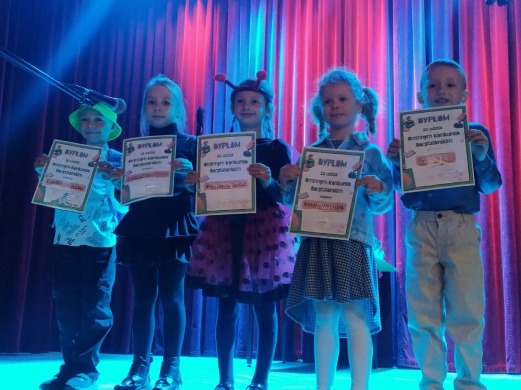 17 kwietnia odbył się Gminny Konkurs Recytatorski. Przedszkole w Wierzbanowej reprezentowali: Magdalena, Maja, Bartłomiej, Zuzanna i Filip. Uczestnicy znakomicie zaprezentowali się na scenie, a Magdalena i Filip otrzymali wyróżnienia. Serdecznie gratulujemy wszystkim przedszkolakom, a Rodzicom dziękujemy za zaangażowanie w przygotowanie dzieci do konkursu😊