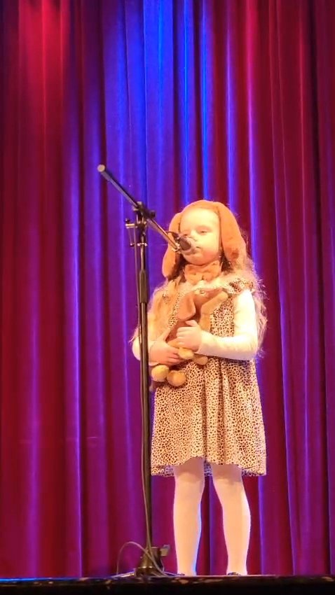 Jowitka i Maja z grupy “Krasnoludki” oraz Maja z grupy Biedronki, która otrzymała wyróżnienie w konkursie. Gratulujemy dziewczynkom odwagi, pięknego prezentowania swoich umiejętności i życzymy dalszego rozwijania talentu. Rodzicom dziękujemy za poświęcony czas, współpracę i przygotowanie młodych artystów do występu na scenie.