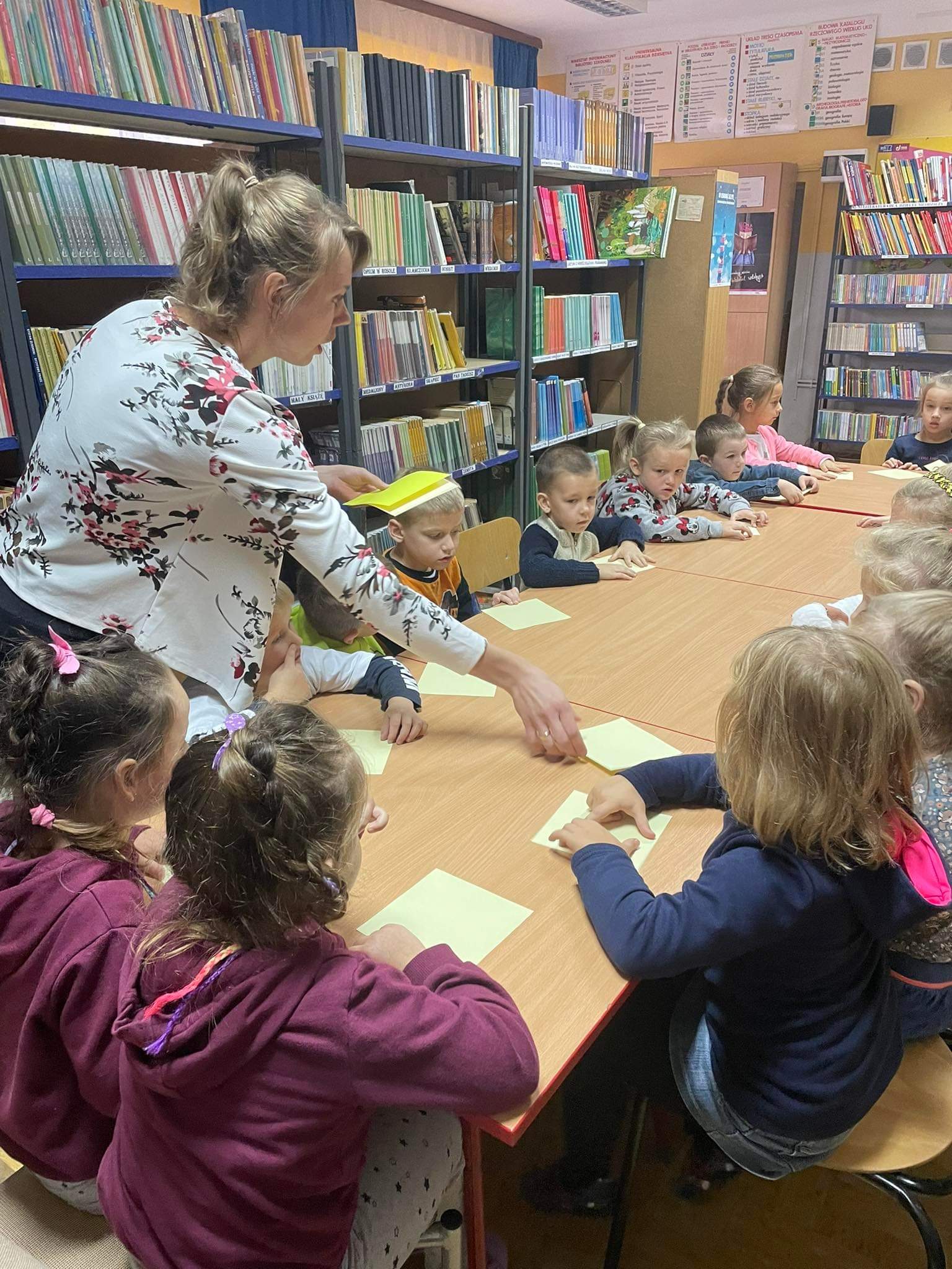 Grupa Pszczółek brała udział w spotkaniu w Bibliotece szkolnej w ramach Międzynarodowego miesiąca bibliotek szkolnych. Przedszkolaki miały okazje posłuchać ciekawych bajek, czytanych przez panią Marysię- bibliotekarkę, jak również samodzielnie wykonały zakładki do książeczek.